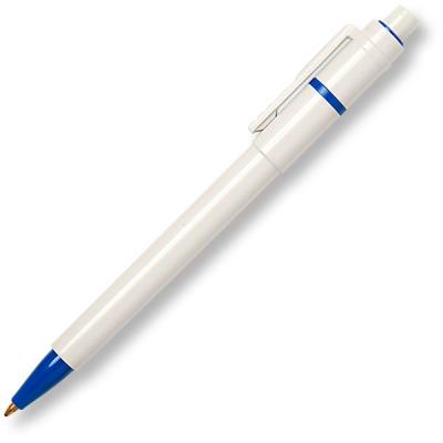 Best Selling Retractable Ballpen Made In Italy By Stilolinea Baron Ft Is Available In A Choice Of Attractive Colours White Barrel, Clip And Push Button With Coloured Nose Cone And Ring Trim Blue Ink Refills